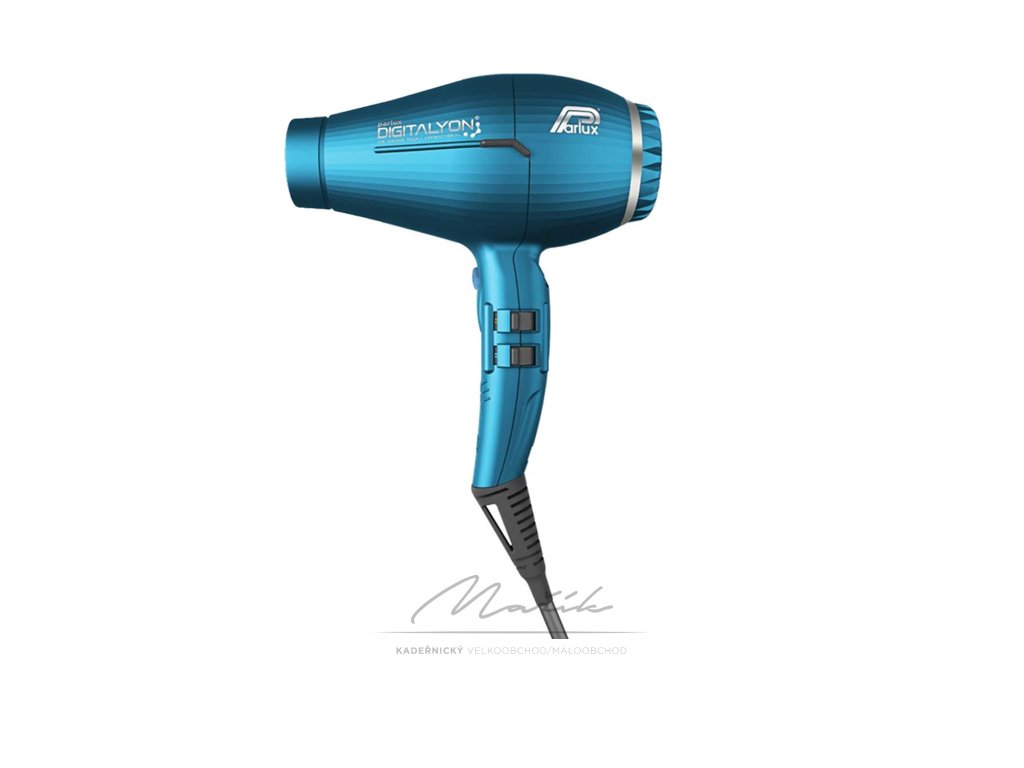 Profesionální fén na vlasy Parlux Digitalyon v modré barvě s výkonem 2400 W je vybaven novým digitálním motorem E-Lyon, který umožňuje vysoušení vlasů rychle a bezpečně díky inovovanému tepelnému tělesu. Fén obsahuje vylepšený filtr s patentovaným systémem HFS, který zachytává všechny uvolněné vlasy a prodlužuje životnost fénu. Díky novým technologiím je fén ultralehký a dobře vyvážený, což jej činí ideálním pro každodenní práci. Fén má dvě možnosti nastavení rychlosti a tři možnosti nastavení teploty vzduchu, stejně jako tlačítko studeného vzduchu a funkci ionizace pro hydrataci, lesk a hedvábnou měkkost vlasů.