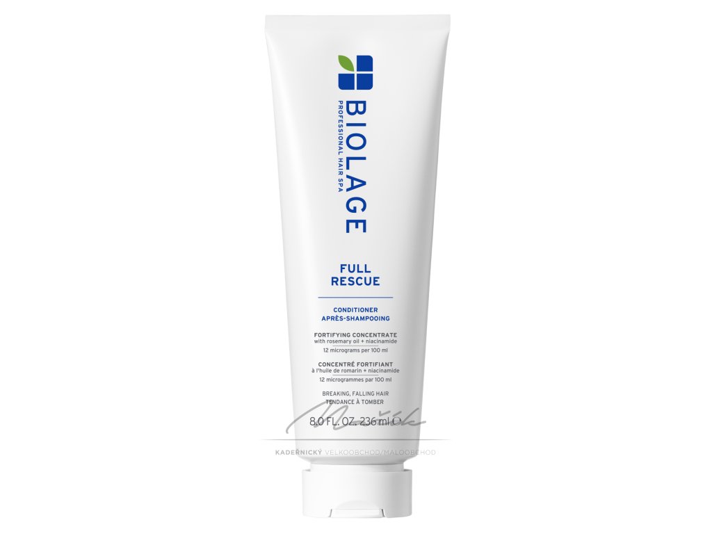 Balzám Full Rescue přináší okamžitý objem a extra posílení slabým a jemným vlasovým vláknům. Inovativní složení s texturou tělového mléka je velmi lehké, šetrně vyživuje vlasy a usnadňuje rozčesávání, dodává vlasům plnější objem na pohled i na dotek. Balzám Full Rescue je obohacený o mikrodávky posilujícího koncentrátu, který obsahuje rozmarýnový olej destilovaný parou a třikrát pročištěný niacinamid. Koncentrát je kalibrovaný s přesností na mikrogramy, přináší dokonale vyváženou odolnost a objem vlasových vláken, hebkost a hydrataci bez zatížení.