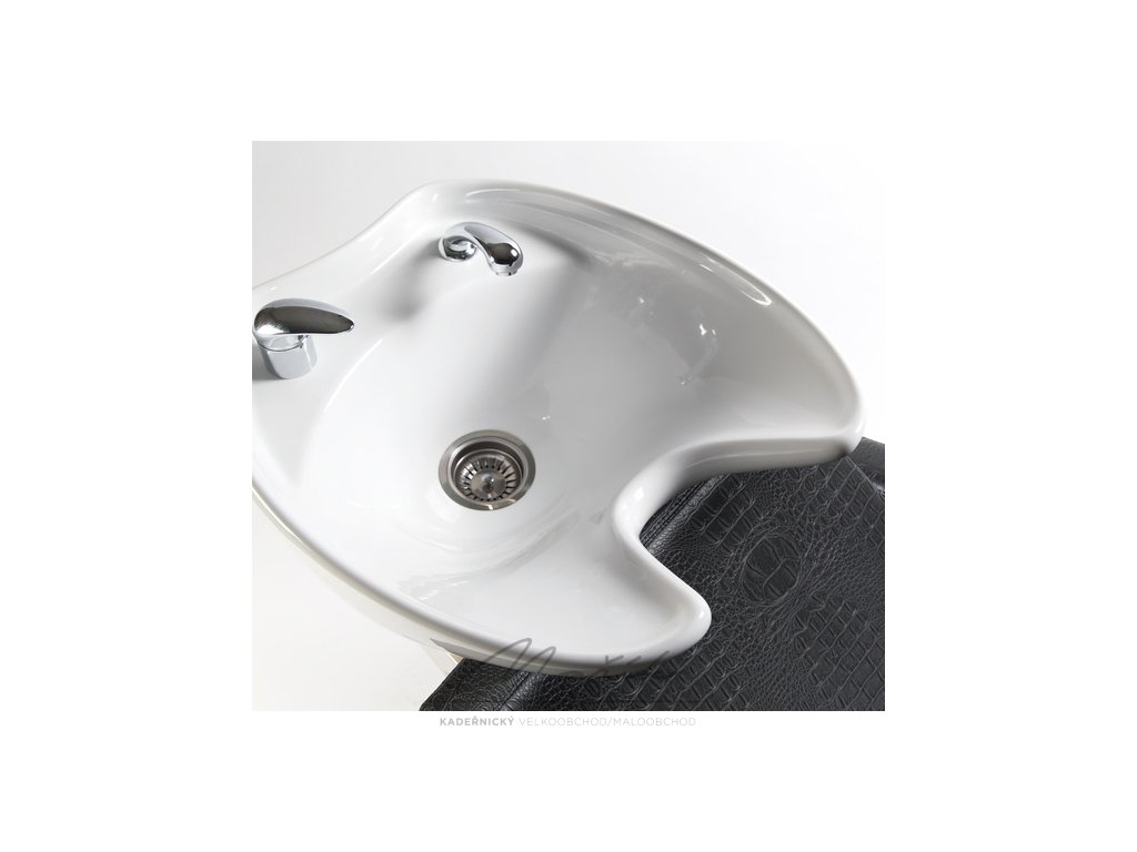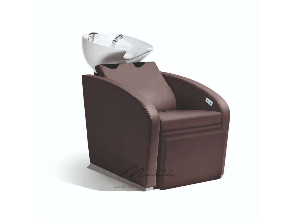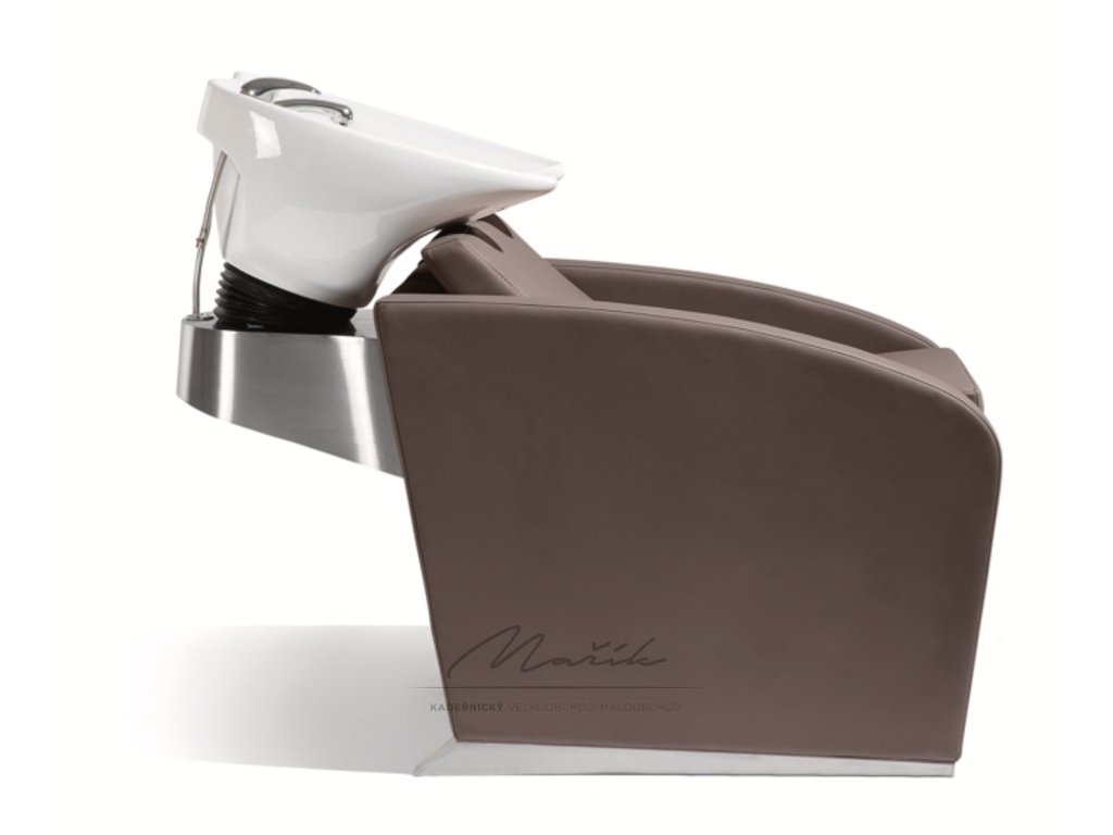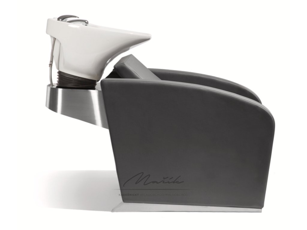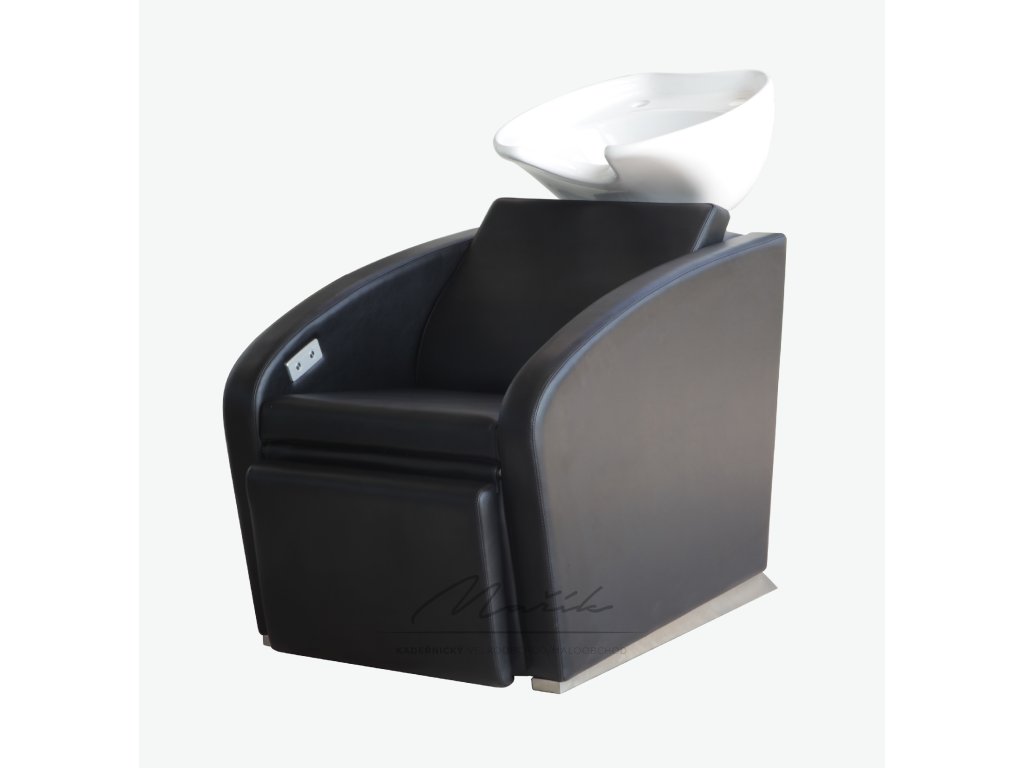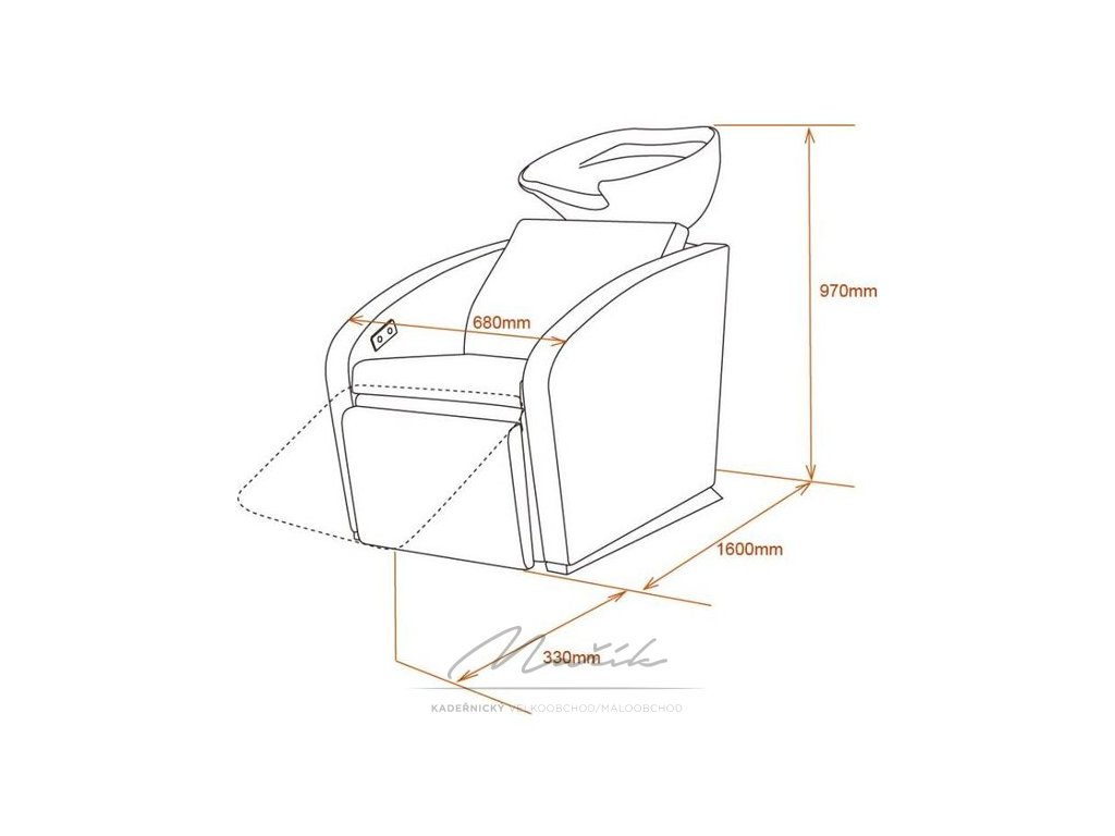 Mycí box s bílým umyvadlem postaven na kovové konstrukci. Sedadlo je čalouněné a má elektronické ovládání opěrky nohou. Nohy jsou z nerezové oceli. Na baterii výrobce poskytuje záruku 5 let.