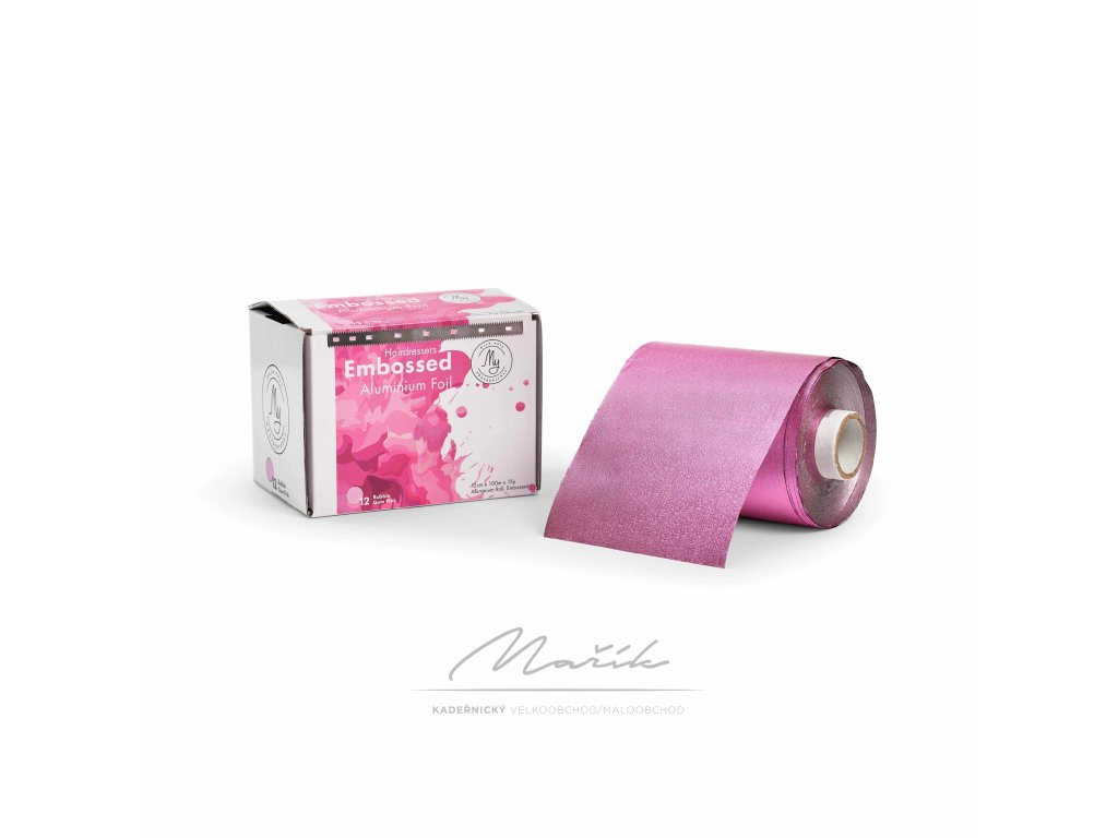 Velmi kvalitní hliníková folie texturovaná, aby neklouzala pro úpravu vlasů v kadeřnických salonech. V krabičce s řezákem.