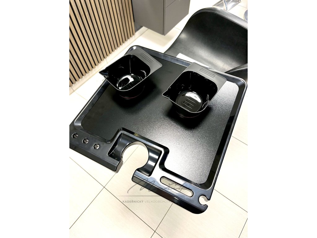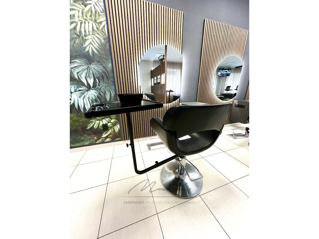 Praktický doplněk kadeřnického křesla, který umožňuje mít misky a pomůcky vždy po ruce. Nastavitelná výška a odstup od křesla.